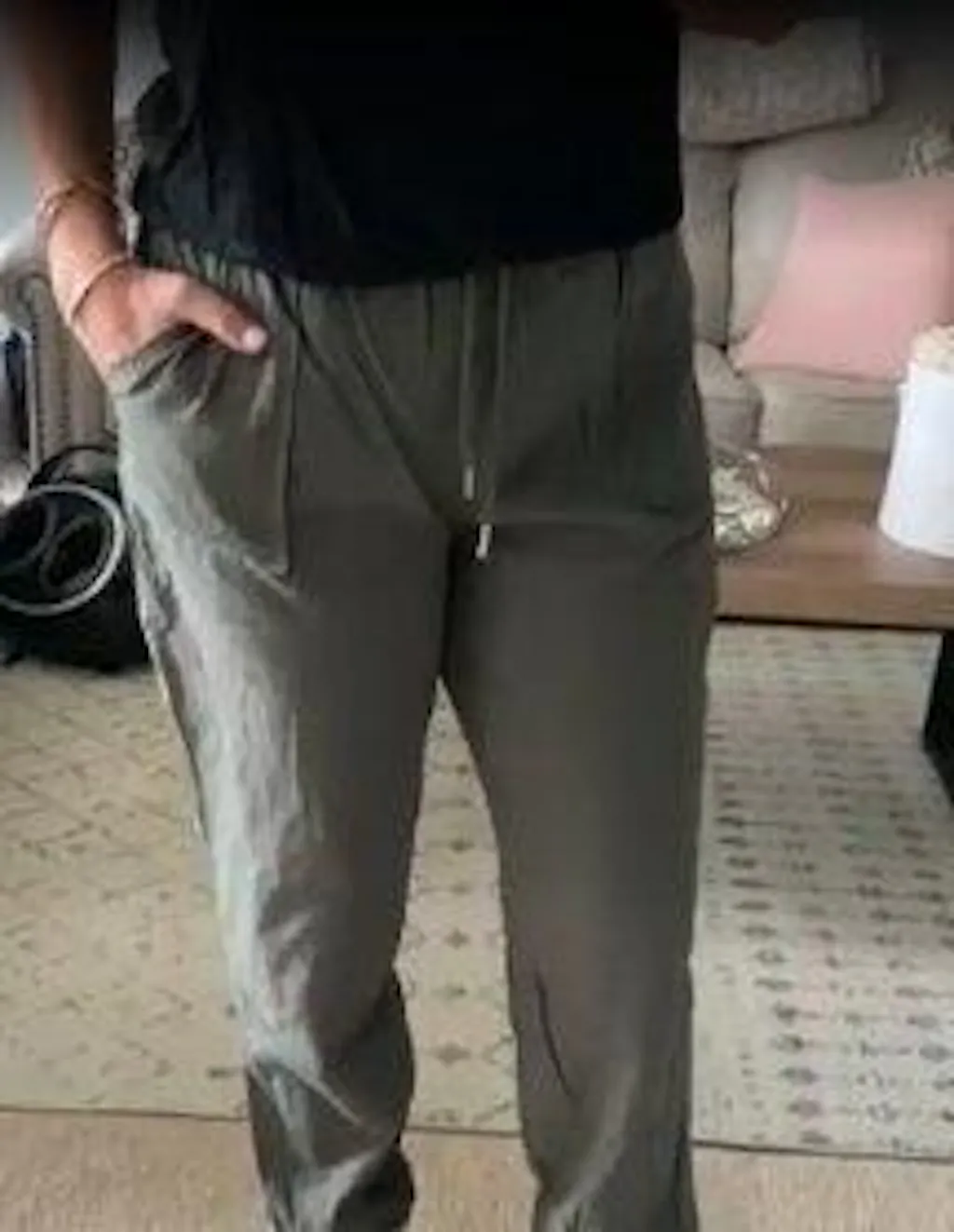 Je cherchais des vêtements en fibres naturelles et ce pantalon de jogging est vraiment sympa. Le tissu en coton et lin est frais sans être trop fin, et tant que la texture du lin avec ses légers plis ne vous dérange pas, il n’y a pas besoin de le repasser. La couleur bleue correspond bien à la photo. Je l’ai lavé à froid et mis à sécher à l’air libre, et il a légèrement rétréci. Je mesure 1,70 m et pèse 57 kg – je fais une taille 4 et j'ai commandé une taille S. Ils m'arrivent désormais au-dessus des chevilles, mais cela ne me dérange pas. La ceinture est large et très confortable.